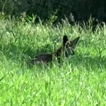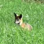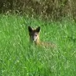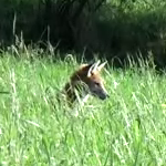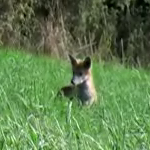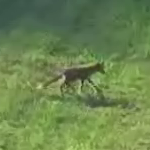A fox, filmed from about 300 meters distance.